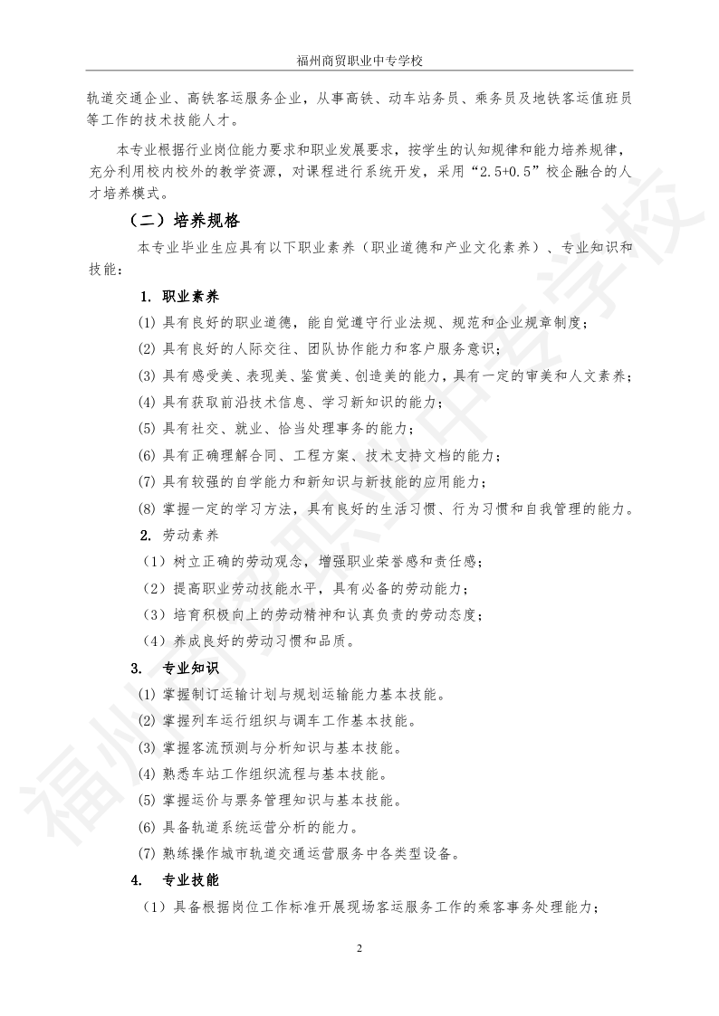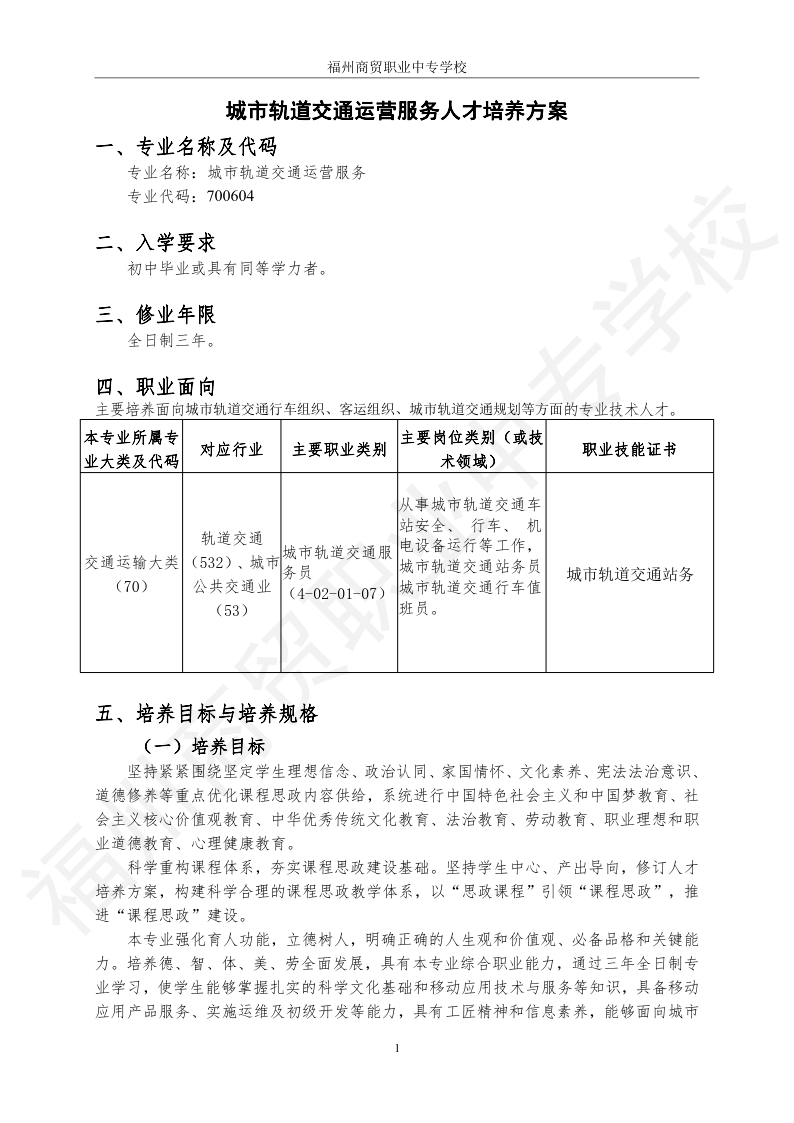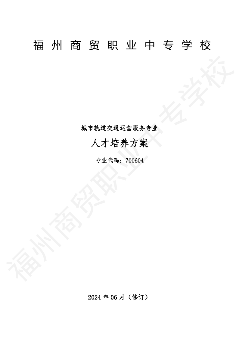 福州商貿(mào)職業(yè)中專學(xué)校 《城市軌道交通運營服務(wù)》專業(yè) 2024級人才培養(yǎng)方案.pdf
