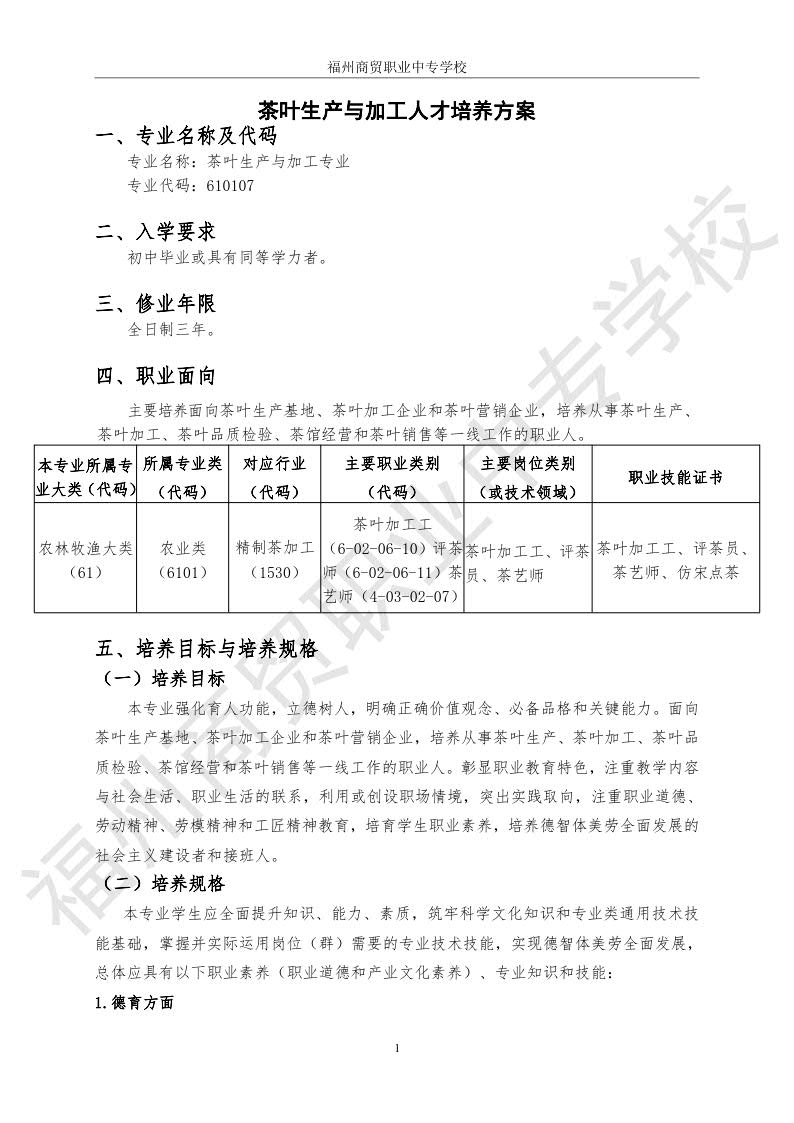 福州商貿(mào)職業(yè)中專學(xué)校 《茶葉生產(chǎn)與加工》專業(yè) 2025級人才培養(yǎng)方案.pdf