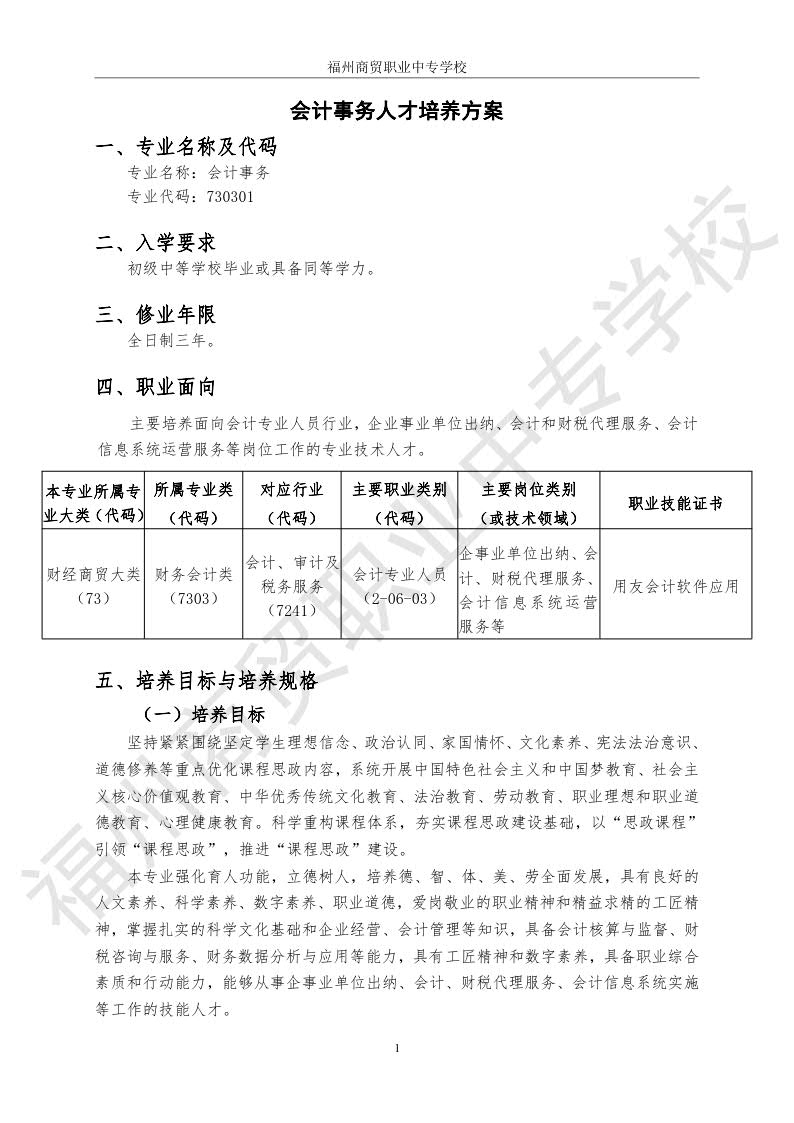 福州商貿(mào)職業(yè)中專學(xué)校 《會(huì)計(jì)事務(wù)》專業(yè) 2025級(jí)人才培養(yǎng)方案.pdf