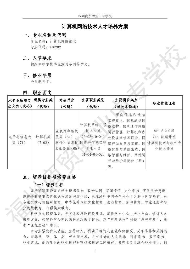 福州商貿(mào)職業(yè)中專學(xué)校 《計(jì)算機(jī)網(wǎng)絡(luò)技術(shù)》專業(yè) 2025級(jí)人才培養(yǎng)方案.pdf
