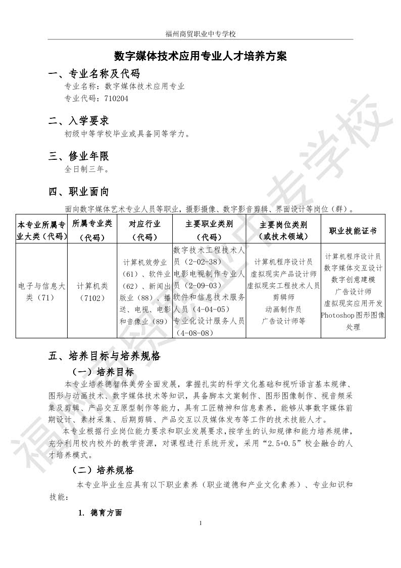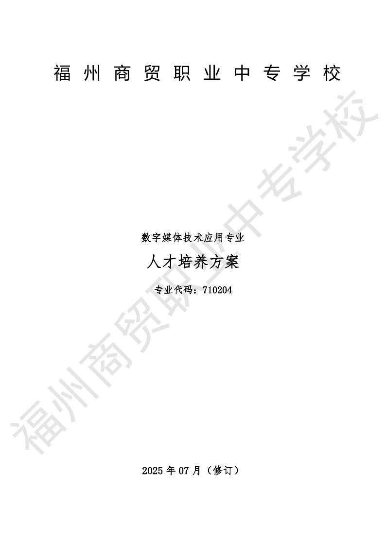 福州商貿(mào)職業(yè)中專學校 《數(shù)字媒體技術(shù)應用》專業(yè) 2025級人才培養(yǎng)方案.pdf