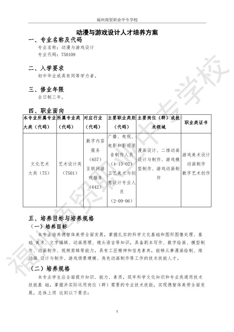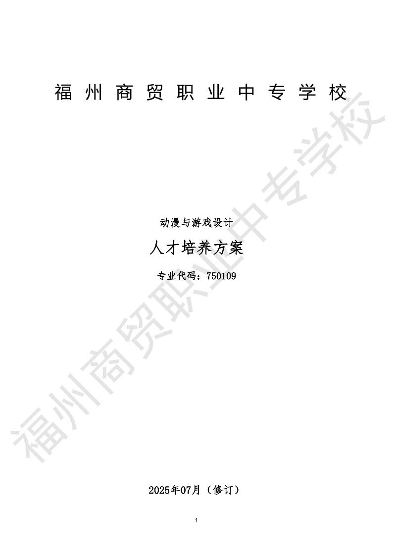 福州商貿職業(yè)中專學?!秳勇c游戲設計》專業(yè) 2025級人才培養(yǎng)方案.pdf