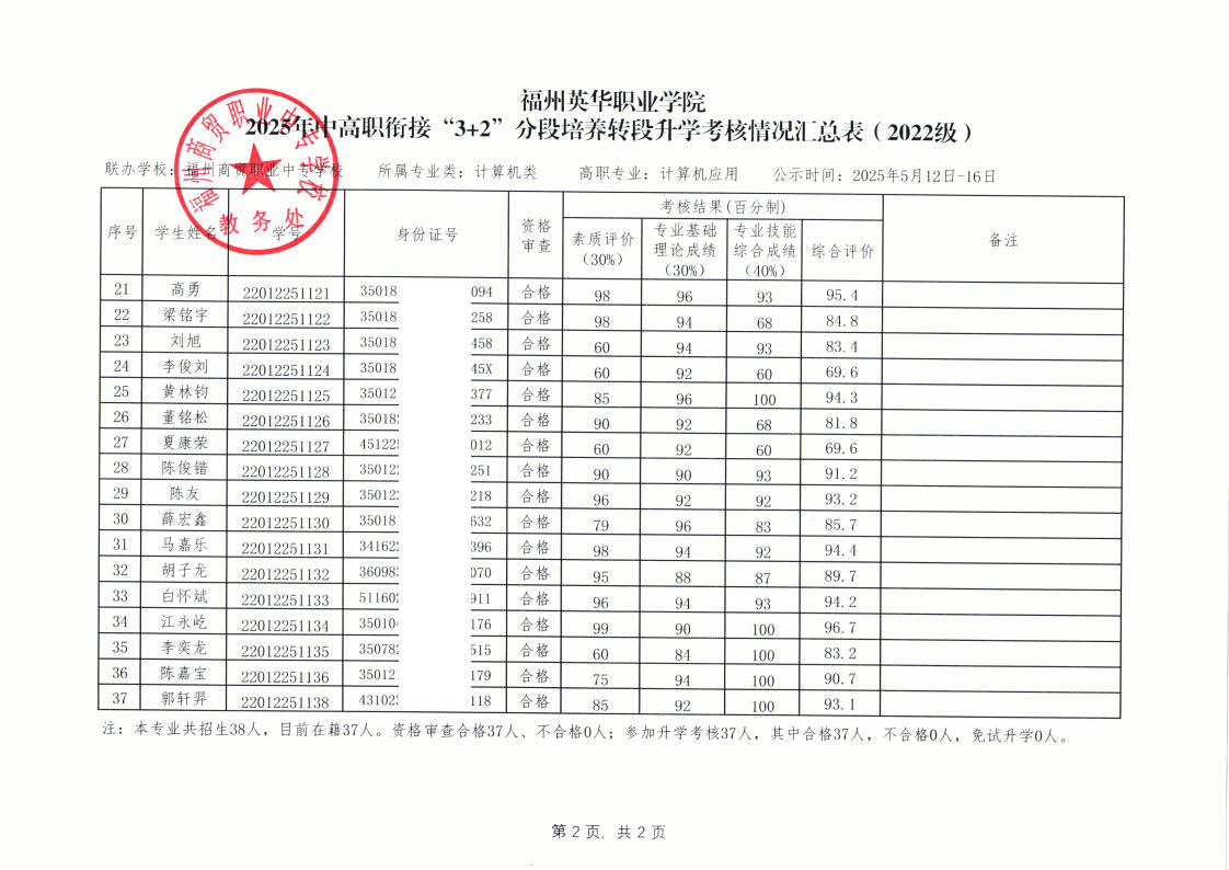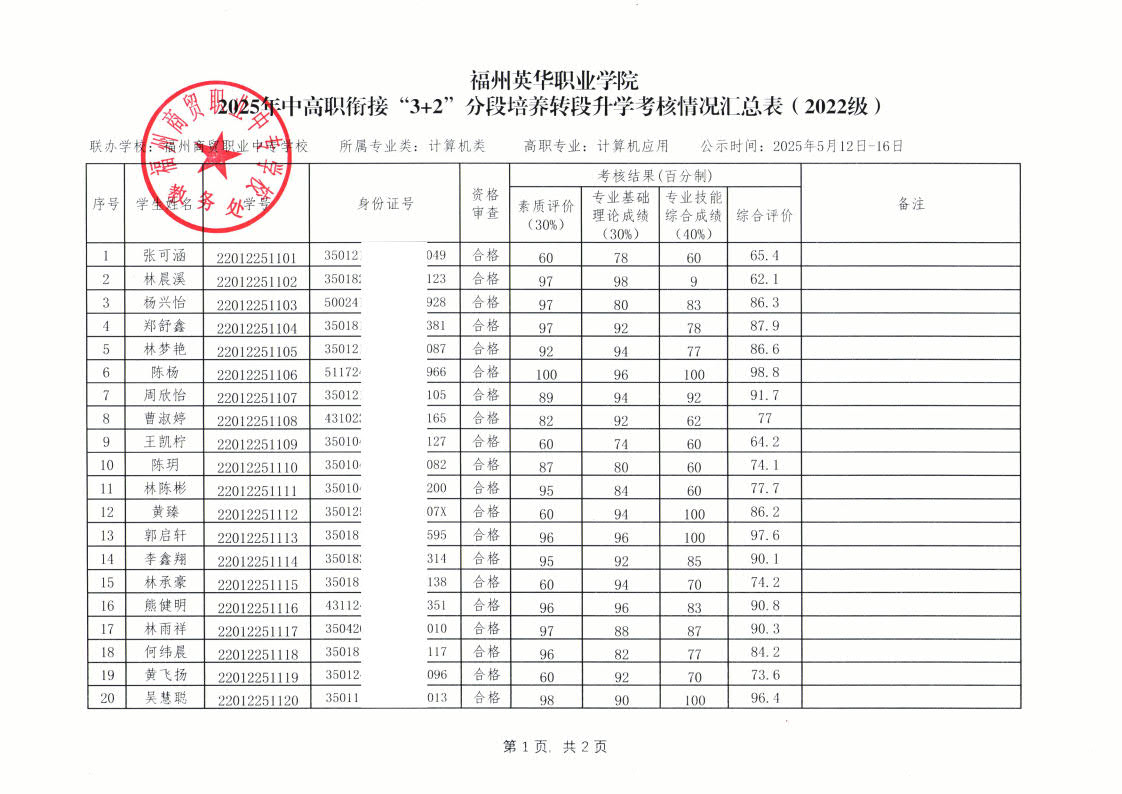 2025年中高職銜接“3+2”分段培養(yǎng)轉(zhuǎn)段升學(xué)考核情況匯總表-公示掃描