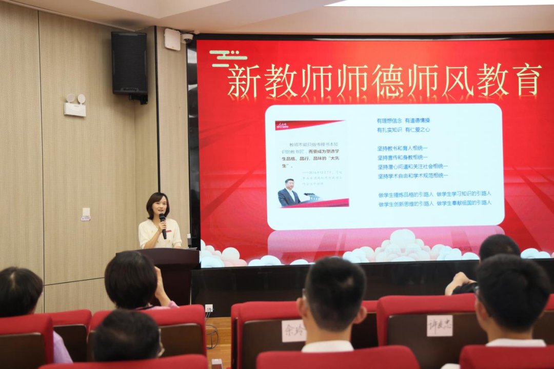 德育處許友忠主任作《福州商貿(mào)職專德育常規(guī)管理》主題發(fā)言,就《中小學(xué)班主任工作規(guī)定》做了解讀。許友忠主任說(shuō)到:想成為一名好的班主任,最關(guān)鍵、最重要、最核心的內(nèi)容就是“愛(ài)”。只因擁有對(duì)學(xué)生那份疼愛(ài),才會(huì)平靜地面對(duì)學(xué)生所犯的錯(cuò)誤,才不會(huì)認(rèn)為學(xué)生在添麻煩;只因擁有對(duì)學(xué)生的那份真摯的愛(ài),才會(huì)想方設(shè)法地開(kāi)展工作,為學(xué)生負(fù)責(zé),為學(xué)生做謀劃。希望12位新老師在今后的工作中要敢于接受挑戰(zhàn),用積極的心態(tài)對(duì)待每一位學(xué)生,做學(xué)生精神的引領(lǐng)者。