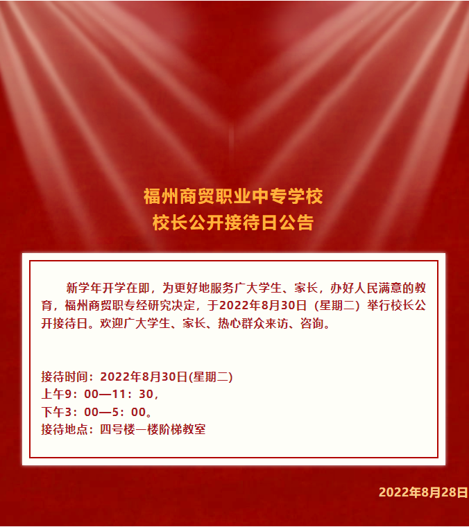 福州商貿(mào)職業(yè)中專學(xué)校校長公開接待日公告