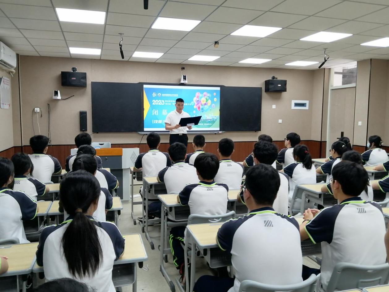 閉幕式上,校黨委書記崔勇為2023年“職業(yè)教育活動周暨首屆‘筑夢杯’技能活動節(jié)”致閉幕詞。崔勇書記向在本次比賽中取得優(yōu)異成績的同學們表示熱烈的祝賀,向老師們表示衷心的感謝,隨后介紹了開展職業(yè)教育活動的重要意義,并希望全體師生以此次活動為契機,繼續(xù)發(fā)揚奮勇爭先的拼搏精神、精益求精的工匠精神。