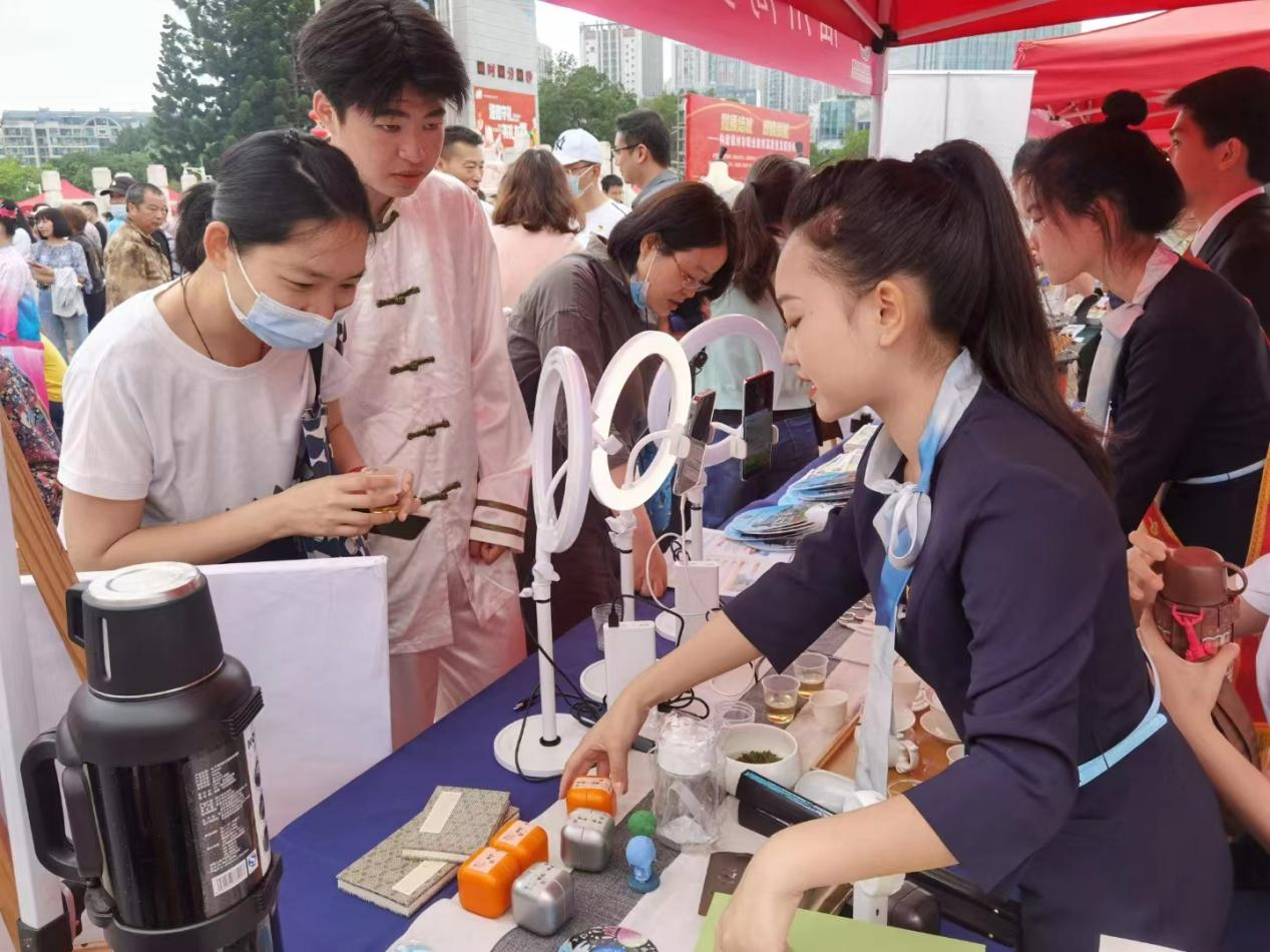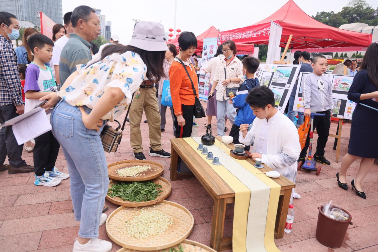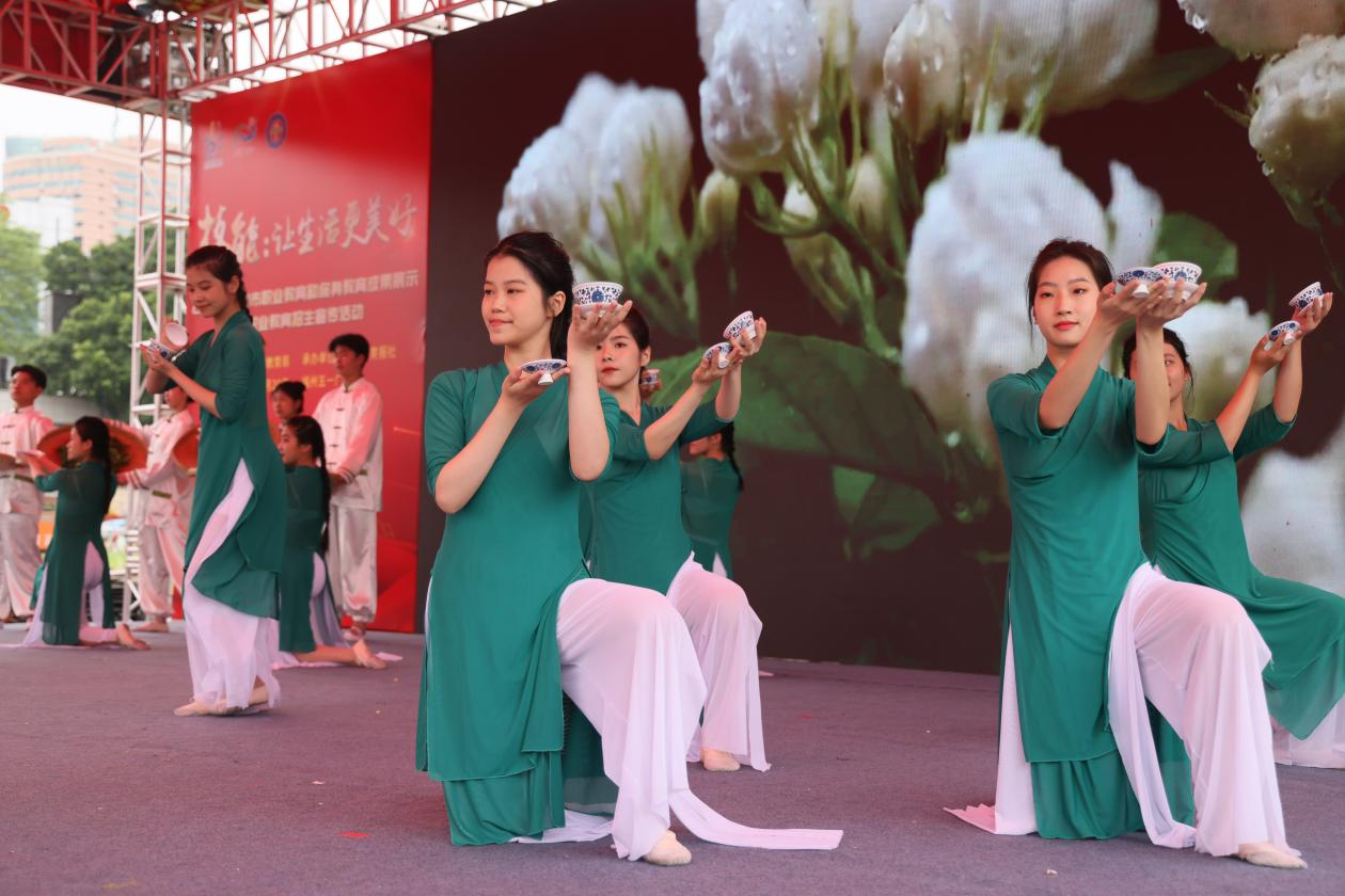學(xué)校茶葉生產(chǎn)制作與加工專業(yè)的學(xué)生,現(xiàn)場進(jìn)行茉莉花茶沖泡表演,他們優(yōu)雅的儀態(tài),流暢的動(dòng)作,吸引了大批市民圍觀。學(xué)生們也將沖泡出的茉莉花茶,分發(fā)給市民們品鑒。