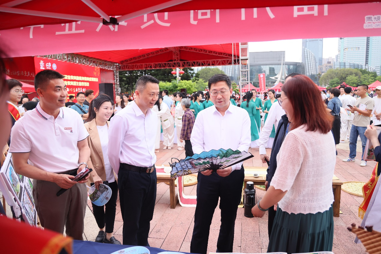 福州市吳一副市長、福州市教育局游昕局長在我校展位前欣賞學(xué)生手繪文創(chuàng)折扇