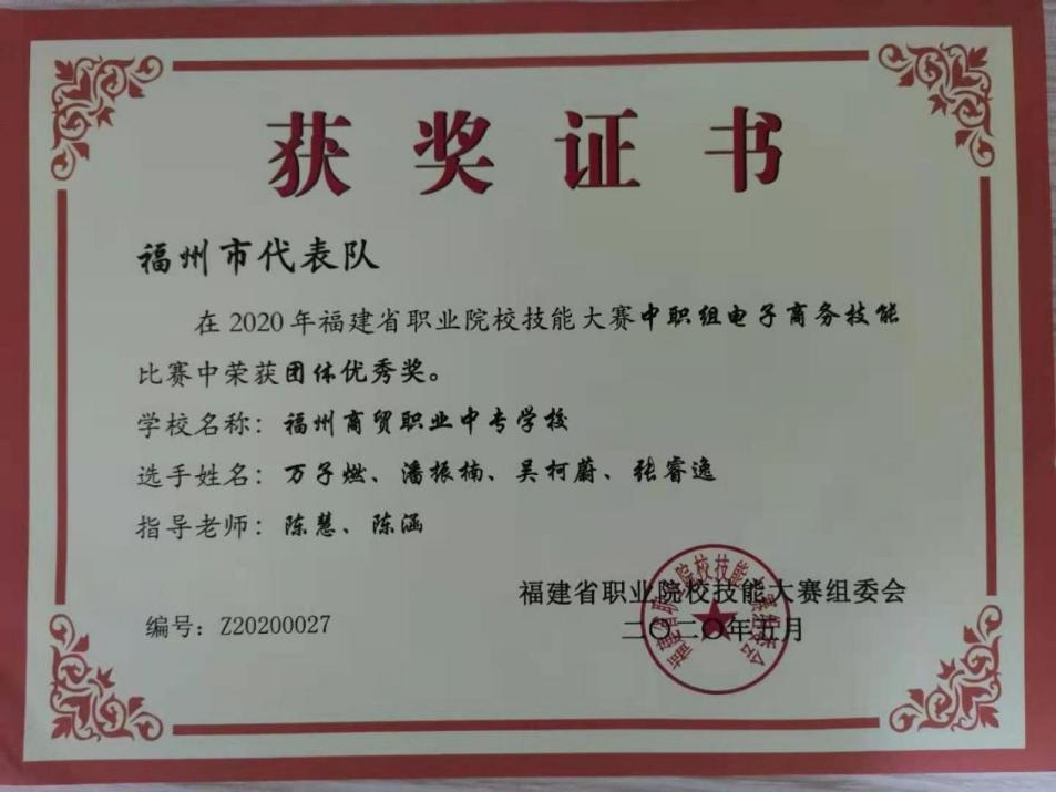 我校師生代表福州市參加2020年福建省職業(yè)技能大賽獲獎證書